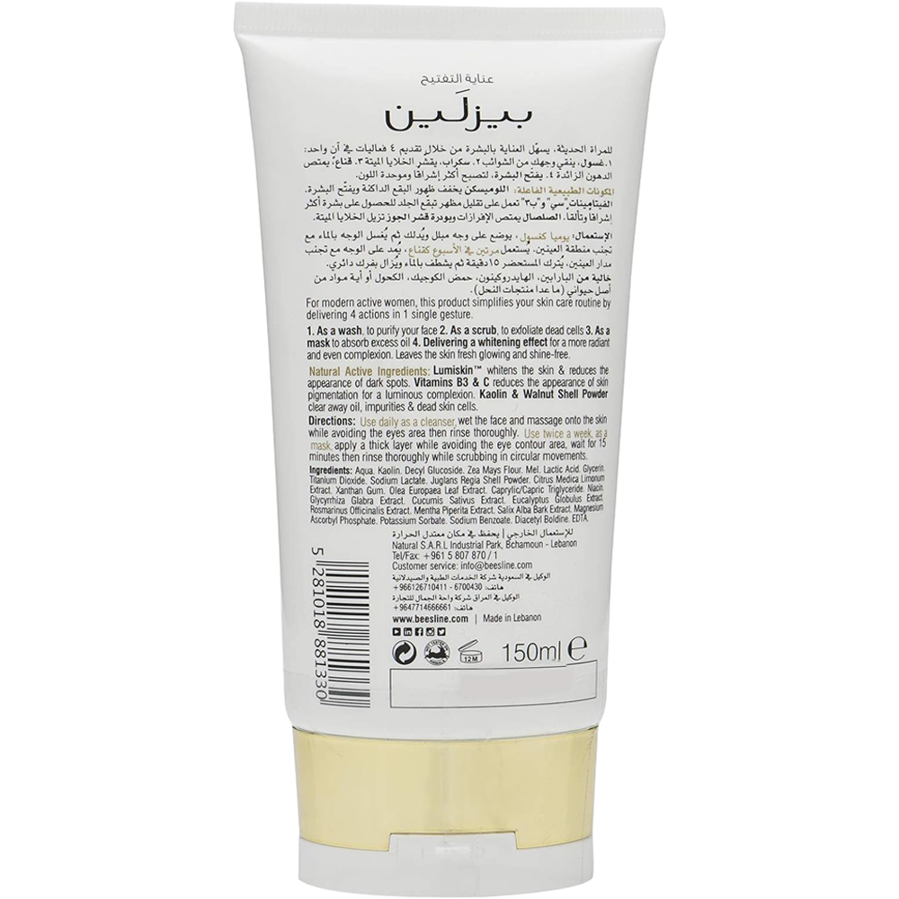 Introducing Beesline 4-in-1 Whitening Cleanser, a luxurious skincare essential that combines the power of nature with advanced formulae. This innovative cleanser seamlessly integrates four key functions to enhance your daily skincare routine. First, it gently purifies your skin, removing impurities and traces of makeup for a fresh and clean canvas. Secondly, its unique whitening properties work harmoniously to brighten and even out your skin tone, promoting a radiant complexion. The formula also boasts moisturizing elements that leave your skin feeling hydrated and supple. Lastly, Beesline's 4-in-1 Cleanser is enriched with natural ingredients, including the renowned healing properties of honey, ensuring a nurturing touch to your skin. Experience the synergy of cleansing, brightening, moisturizing, and natural goodness in one exceptional product. Elevate your skincare ritual with Beesline's 4-in-1 Whitening Cleanser for a luminous and revitalized complexion.