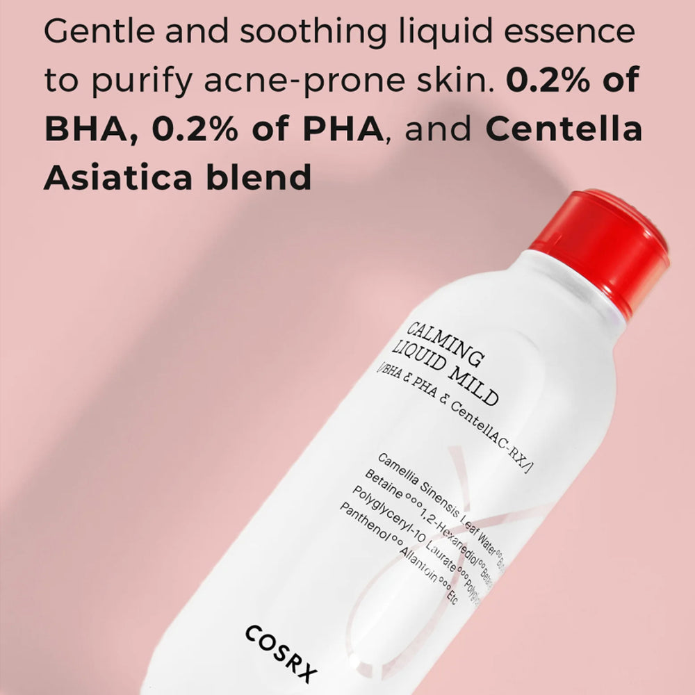 Treat your sensitive and acne-prone skin with COSRX AC Collection Calming Liquid Mild, a gentle yet effective solution to soothe and nourish your complexion. Formulated with propolis extract, it provides anti-inflammatory and antibacterial benefits, helping to calm redness and minimize breakouts. This lightweight liquid is suitable for daily use and delivers hydration without clogging pores, making it an ideal addition to your skincare routine. The soothing properties of this liquid contribute to a more balanced and revitalized complexion, promoting overall skin health. Elevate your skincare regimen with COSRX AC Collection Calming Liquid Mild and unveil the secret to a calmer, clearer, and healthier-looking complexion. Transform your daily routine into a calming and purifying experience with this mild liquid solution.