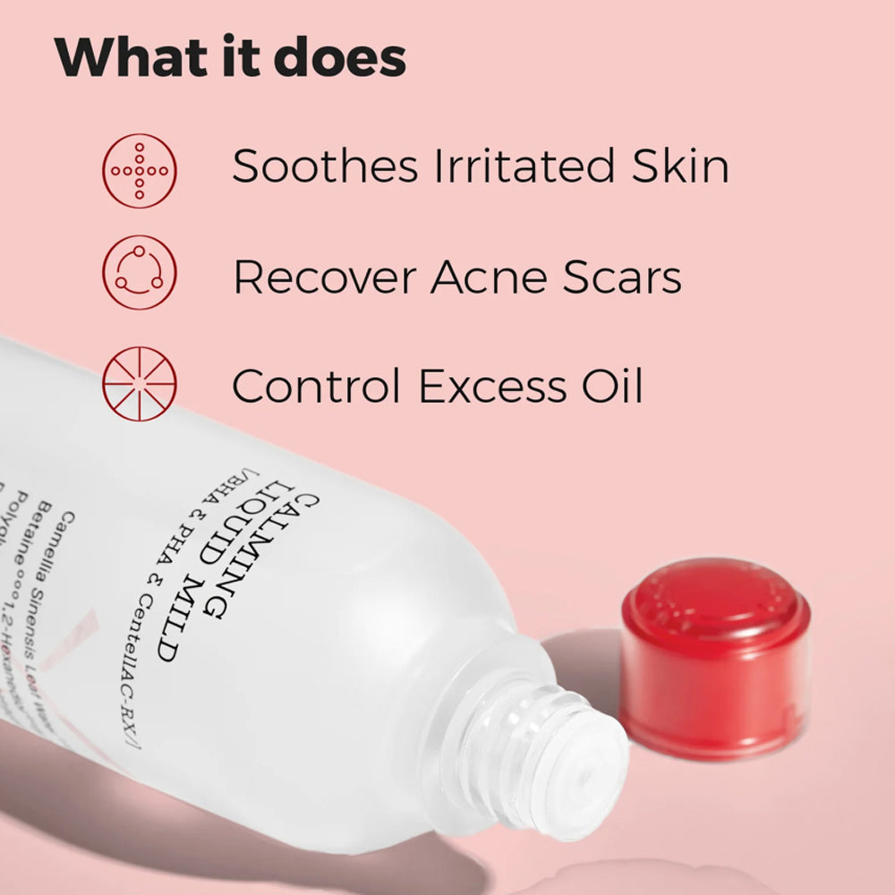 - Gentle, soothing liquid with BHA for mild exfoliation and clarification.