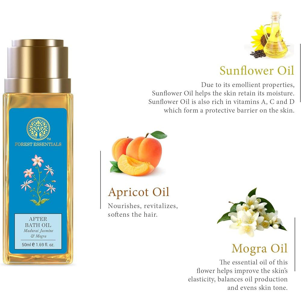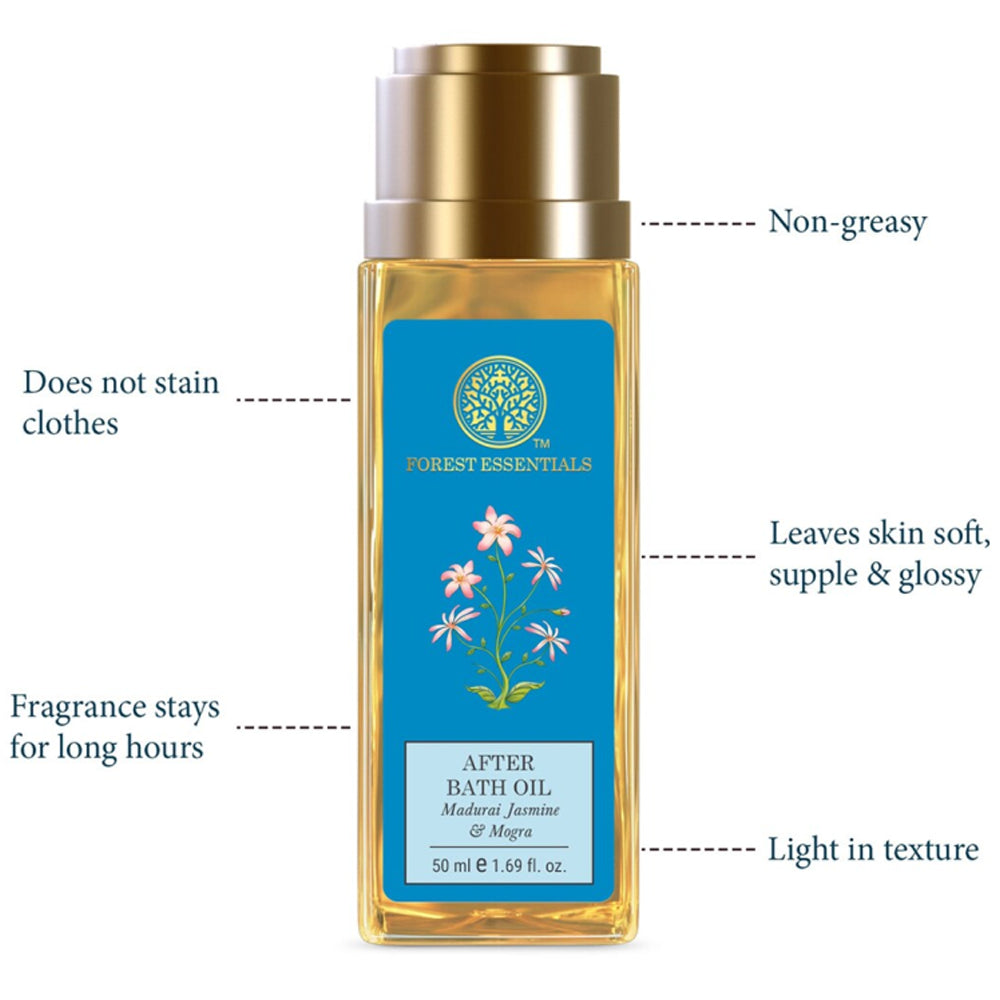 Indulge in the opulence of Forest Essentials After Bath Oil in Madurai Jasmine & Mogra, a luxurious elixir that transforms your post-shower routine into a fragrant and nourishing ritual. Immerse yourself in the enchanting floral notes of Madurai Jasmine and Mogra, evoking the timeless beauty of traditional Indian blooms. This exquisite after-bath oil is meticulously crafted with the richness of pure, cold-pressed oils that deeply hydrate and rejuvenate the skin. The sensual fragrance lingers delicately, leaving you enveloped in the sublime essence of jasmine and mogra. As you pamper your skin, this decadent blend promotes a silky-smooth texture, ensuring a radiant and moisturized feel throughout the day. Elevate your self-care routine with Forest Essentials After Bath Oil, a fragrant ode to the classical elegance of Madurai Jasmine and Mogra, offering you an unparalleled sensorial experience for nourished, luminous skin.