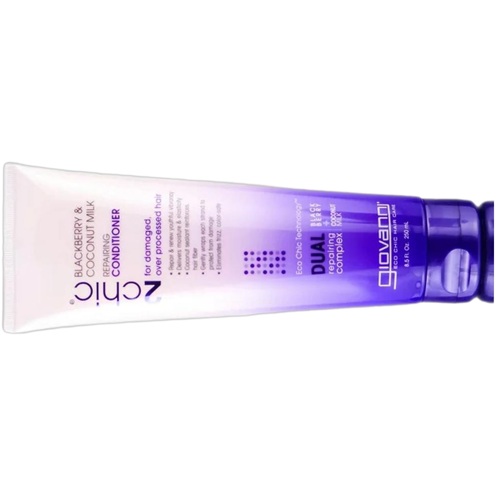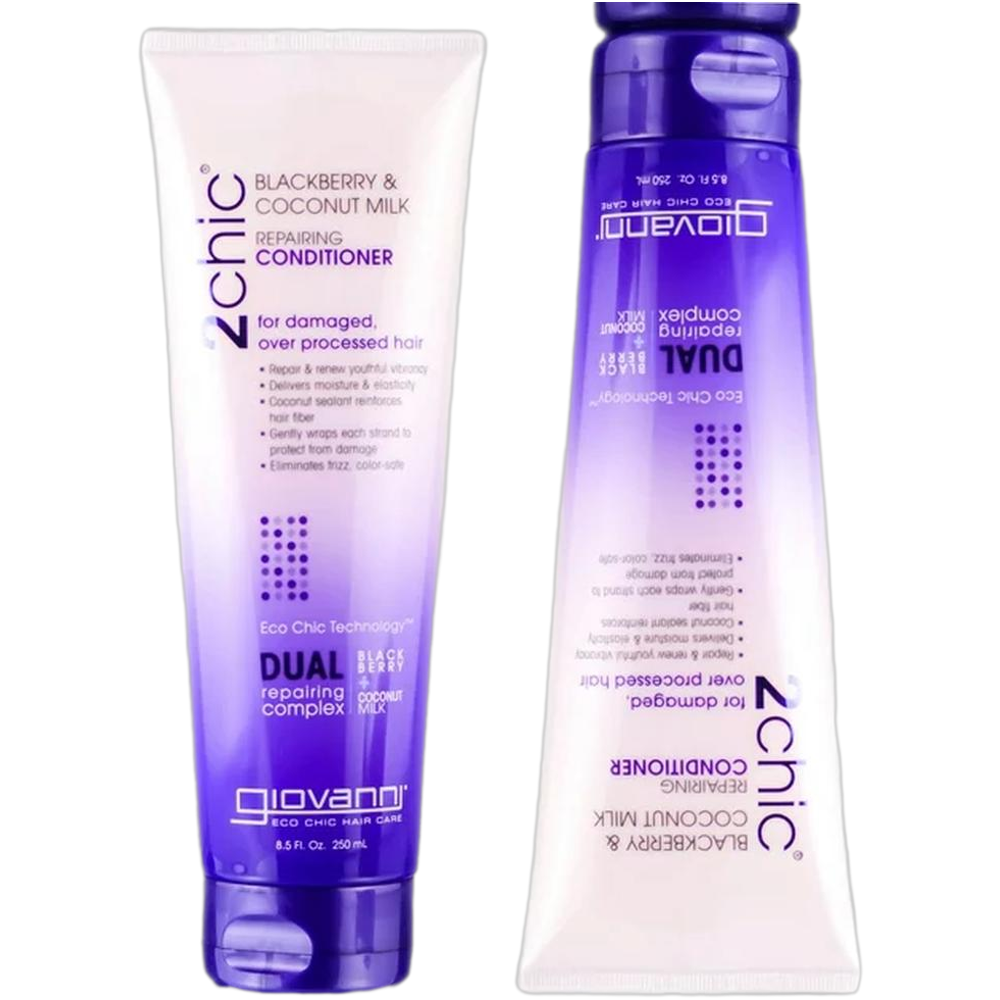 Revive and restore your hair with Giovanni Hair Care Products Conditioner 2chic Ultra Repair. Enriched with the powerful duo of Blackberry and Coconut Milk, this ultra-repair conditioner provides intense hydration and replenishment for damaged and overworked hair. The antioxidant-rich Blackberry helps improve hair strength and resilience, while Coconut Milk nourishes and adds a lustrous shine. Giovanni prioritizes natural ingredients, ensuring this conditioner is free from sulfates, parabens and artificial dyes. The 2chic Ultra Repair Conditioner transforms your hair with a luxurious blend that leaves it feeling silky, soft and revitalized. Immerse yourself in the delightful aroma as you pamper your strands, embracing a natural and effective approach to hair care. Elevate your routine with Giovanni, where botanical brilliance meets salon-quality results. Treat your hair to the indulgence it deserves with 2chic Ultra Repair Conditioner for a healthy and radiant mane.