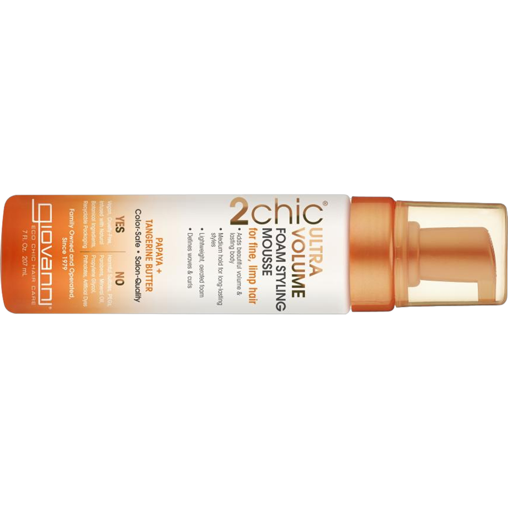 Elevate your styling game with Giovanni 2chic Ultra-Volume Foam Styling Mousse, a revolutionary formula designed to give your hair the boost it deserves. Infused with a harmonious blend of Tangerine and Papaya Butter, this styling mousse delivers weightless volume and lift to your locks. The airy foam texture provides easy application and long-lasting hold without weighing your hair down. Giovanni is committed to natural beauty, ensuring this mousse is free from harsh chemicals, sulfates and parabens. Experience the invigorating citrus fragrance as you style, leaving your hair with a luxurious scent that lingers throughout the day. Transform your hair into a voluminous masterpiece with Giovanni, where natural ingredients meet salon-quality results. Say goodbye to flat and hello to fabulous with Giovanni 2chic Ultra-Volume Foam Styling Mousse for a glamorous and uplifting styling experience.