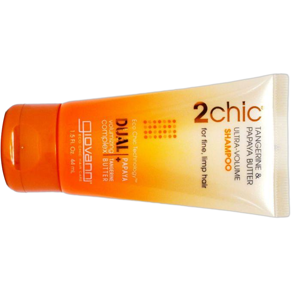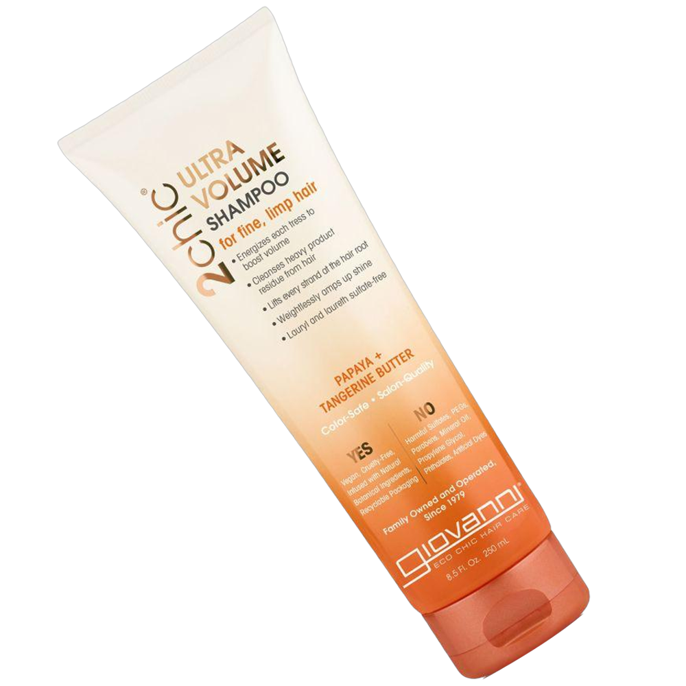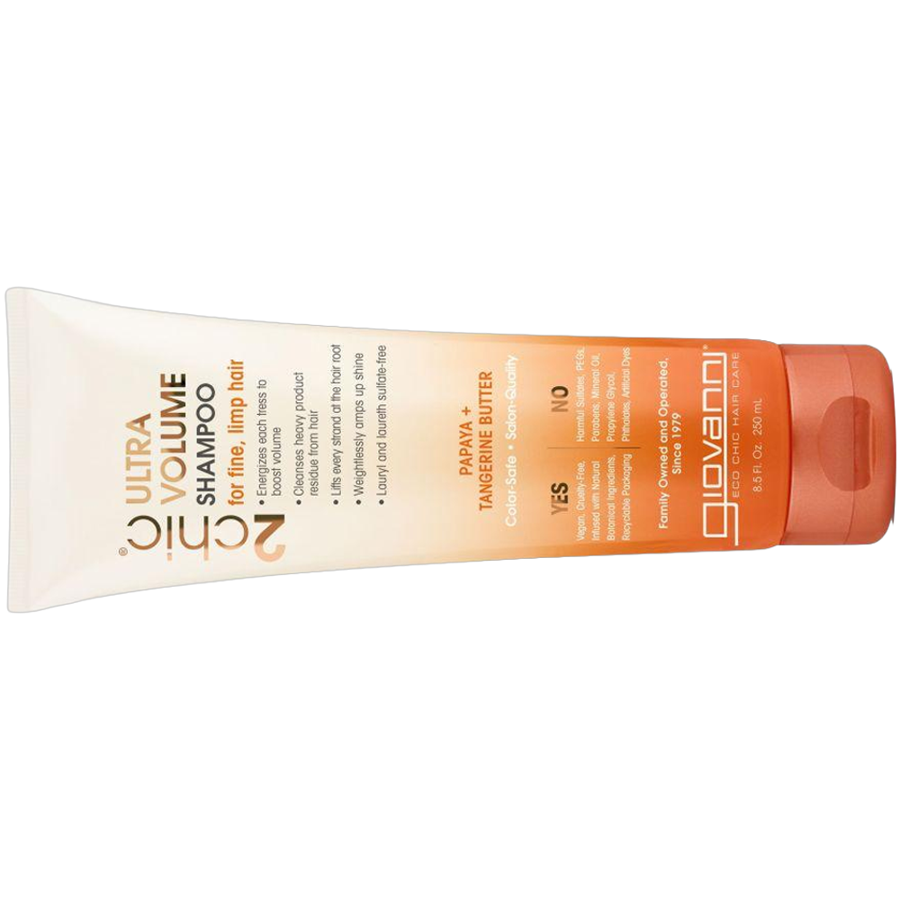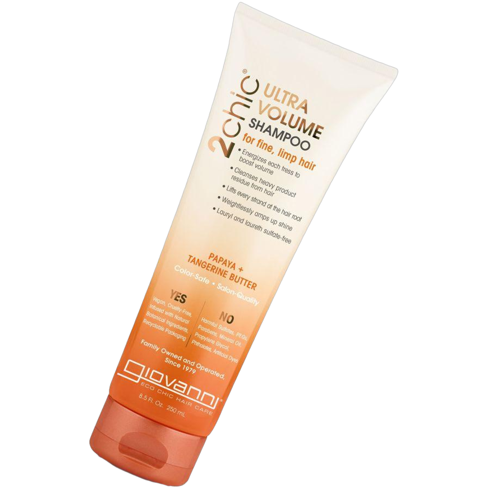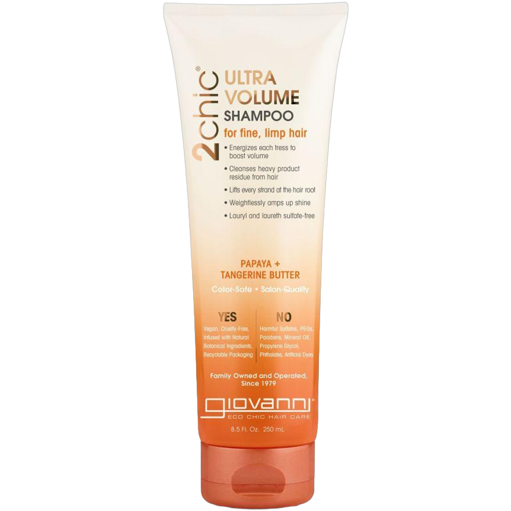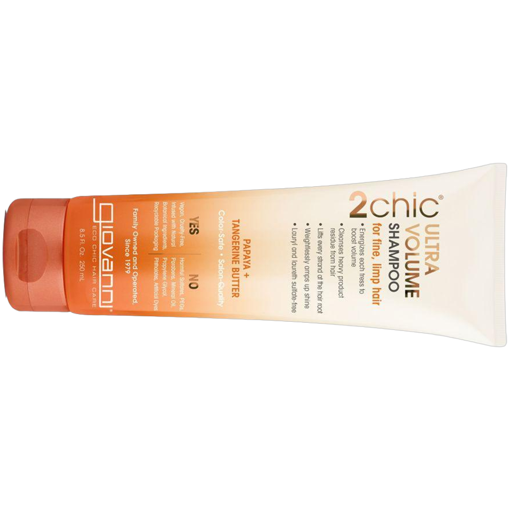 Elevate your hair care routine with Giovanni 2chic Ultra Volume Shampoo, a luxurious blend designed to boost volume and amplify your locks. Crafted with precision, this shampoo combines the enriching properties of juicy Tangerine and buttery Papaya, infusing your hair with nourishing vitamins and antioxidants. The ultra volumizing formula gently cleanses, leaving your hair feeling weightless, full bodied and irresistibly soft. Giovanni's commitment to quality is evident in the absence of sulfates, parabens and dyes, making this shampoo suitable for daily use and all hair types. Immerse yourself in the invigorating scent and indulge in the transformative experience of voluminous, vibrant hair. Unleash the power of nature with Giovanni 2chic Ultra Volume Shampoo, where every wash is a step towards a fuller, more luxurious mane that exudes health and vitality.