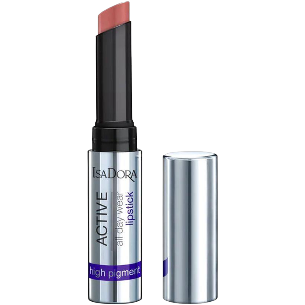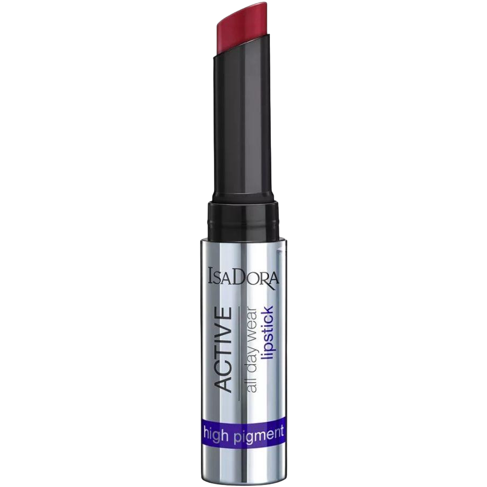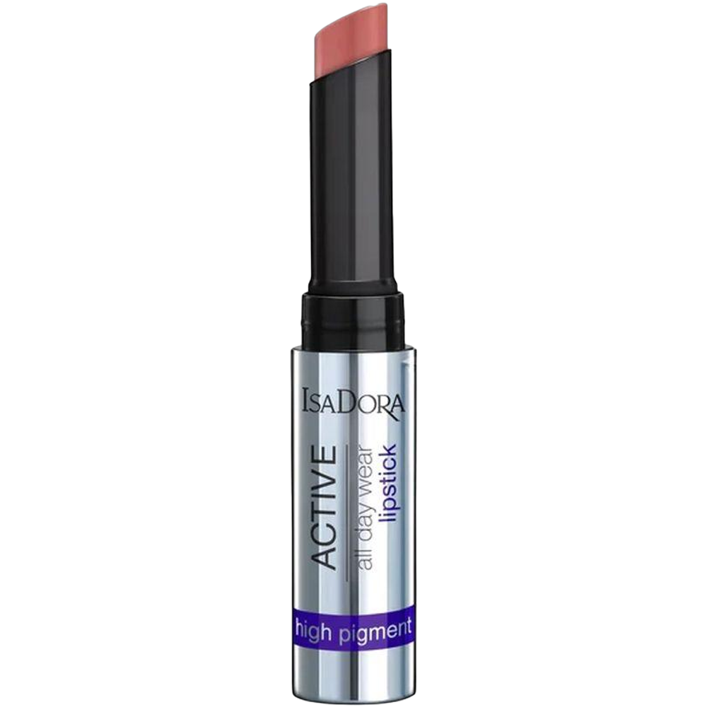 Experience long-lasting lip color with Isadora Active All Day Wear Lipstick. This innovative lipstick is designed to stay vibrant and comfortable on your lips throughout the day. The lightweight and creamy formula provide intense color payoff while keeping your lips moisturized. The unique active formula ensures the lipstick adheres to your lips, resisting smudging, feathering and fading. The lipstick glides on smoothly, leaving a satin finish that feels luxurious and looks stunning. With a range of beautiful shades to choose from, you can find the perfect color to complement your style. Enjoy a bold and confident lip look that lasts with Isadora Active All Day Wear Lipstick.