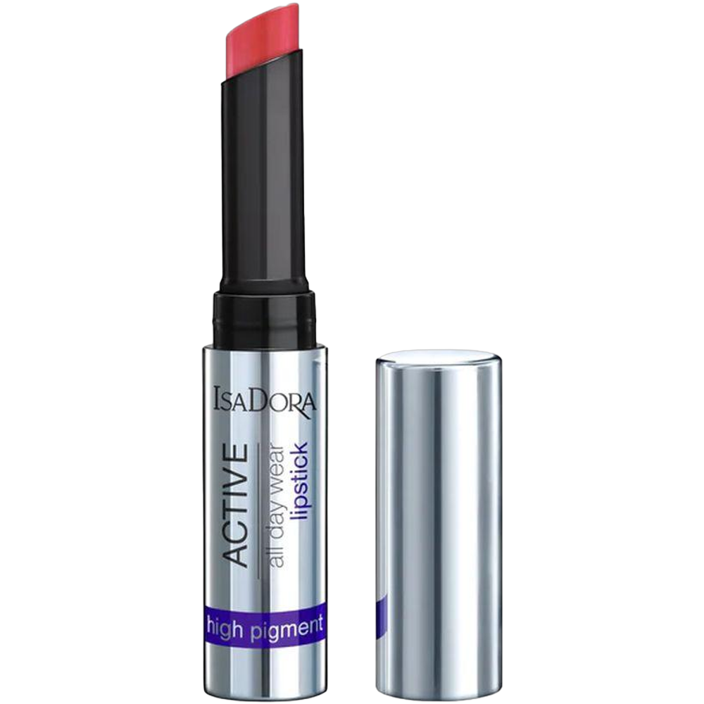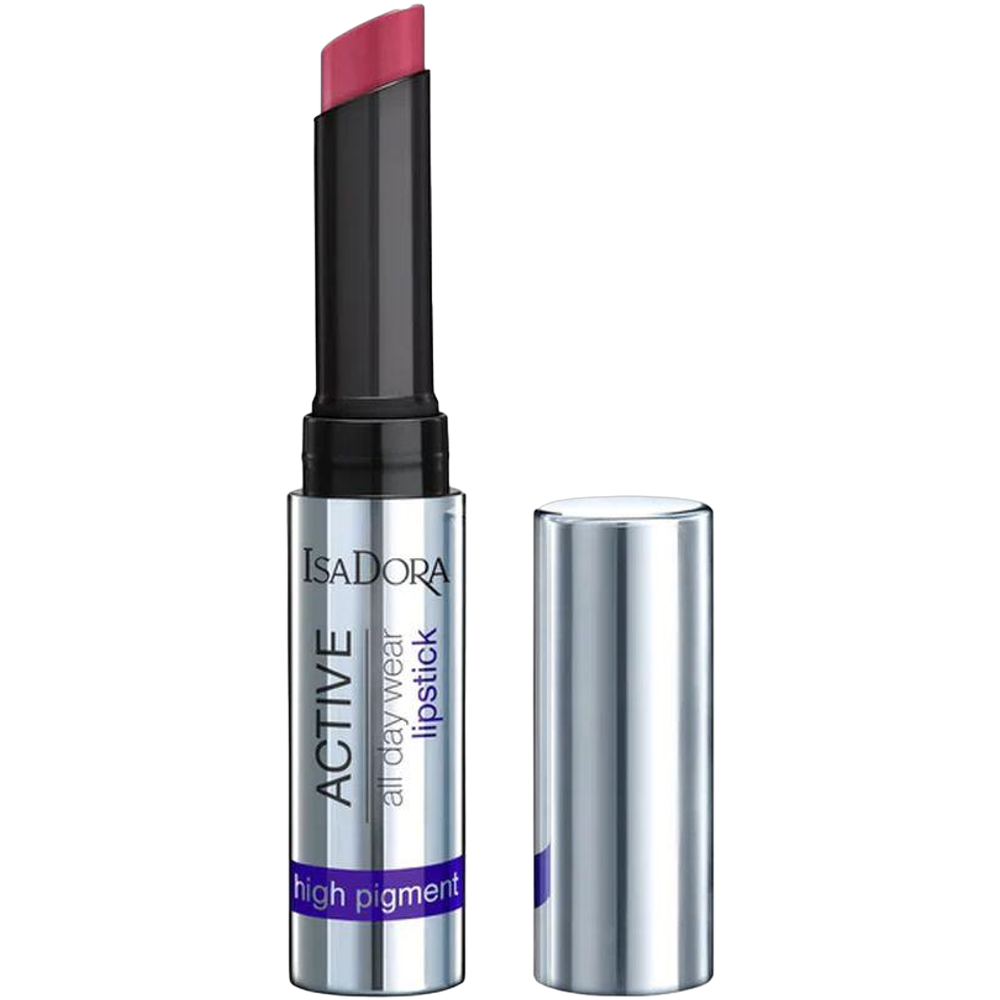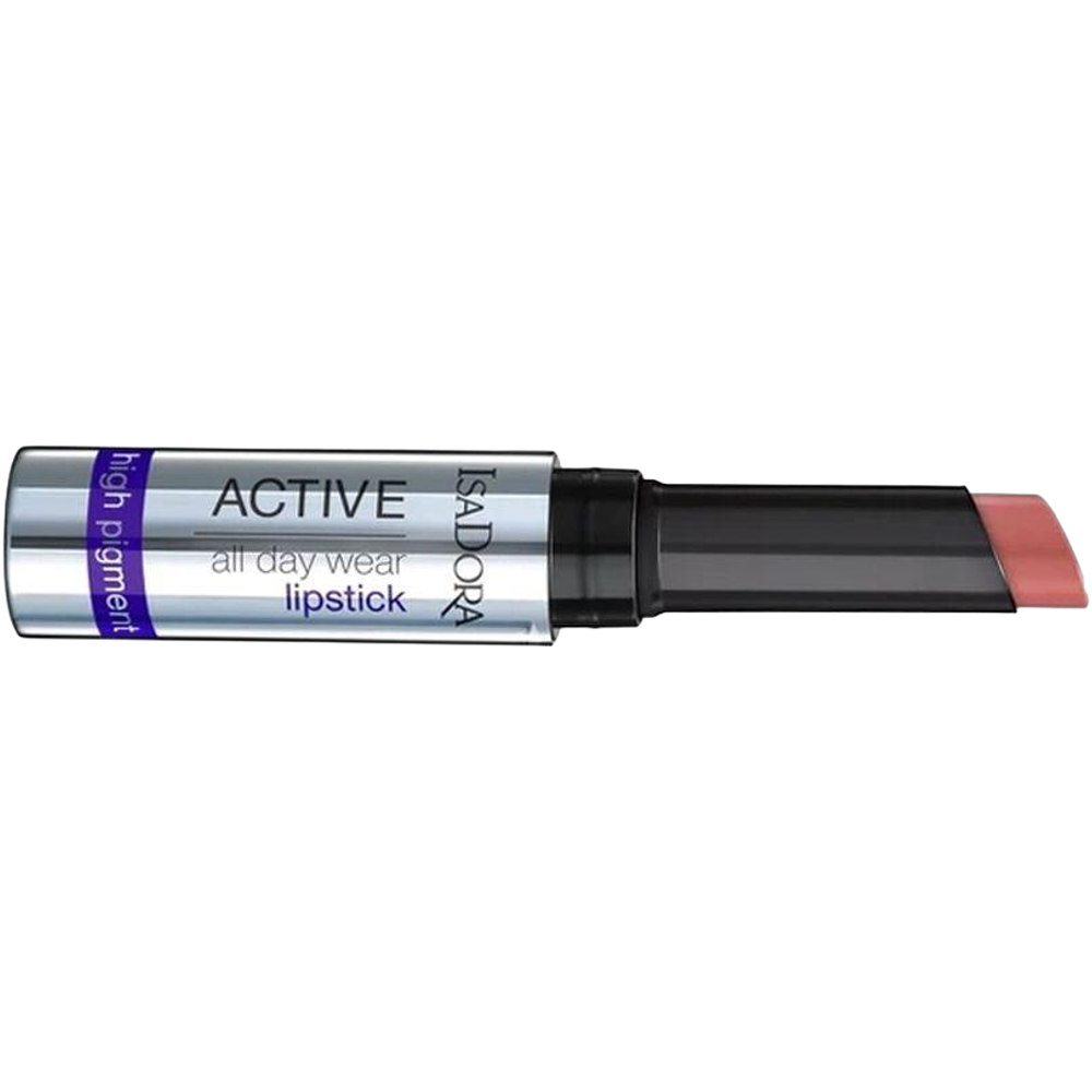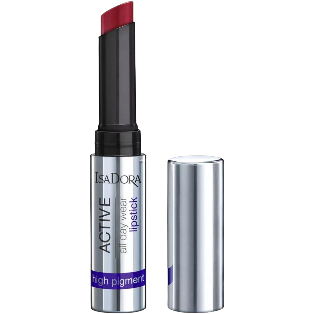 Experience long-lasting lip color with Isadora Active All Day Wear Lipstick. This innovative lipstick is designed to stay vibrant and comfortable on your lips throughout the day. The lightweight and creamy formula provide intense color payoff while keeping your lips moisturized. The unique active formula ensures the lipstick adheres to your lips, resisting smudging, feathering and fading. The lipstick glides on smoothly, leaving a satin finish that feels luxurious and looks stunning. With a range of beautiful shades to choose from, you can find the perfect color to complement your style. Enjoy a bold and confident lip look that lasts with Isadora Active All Day Wear Lipstick.