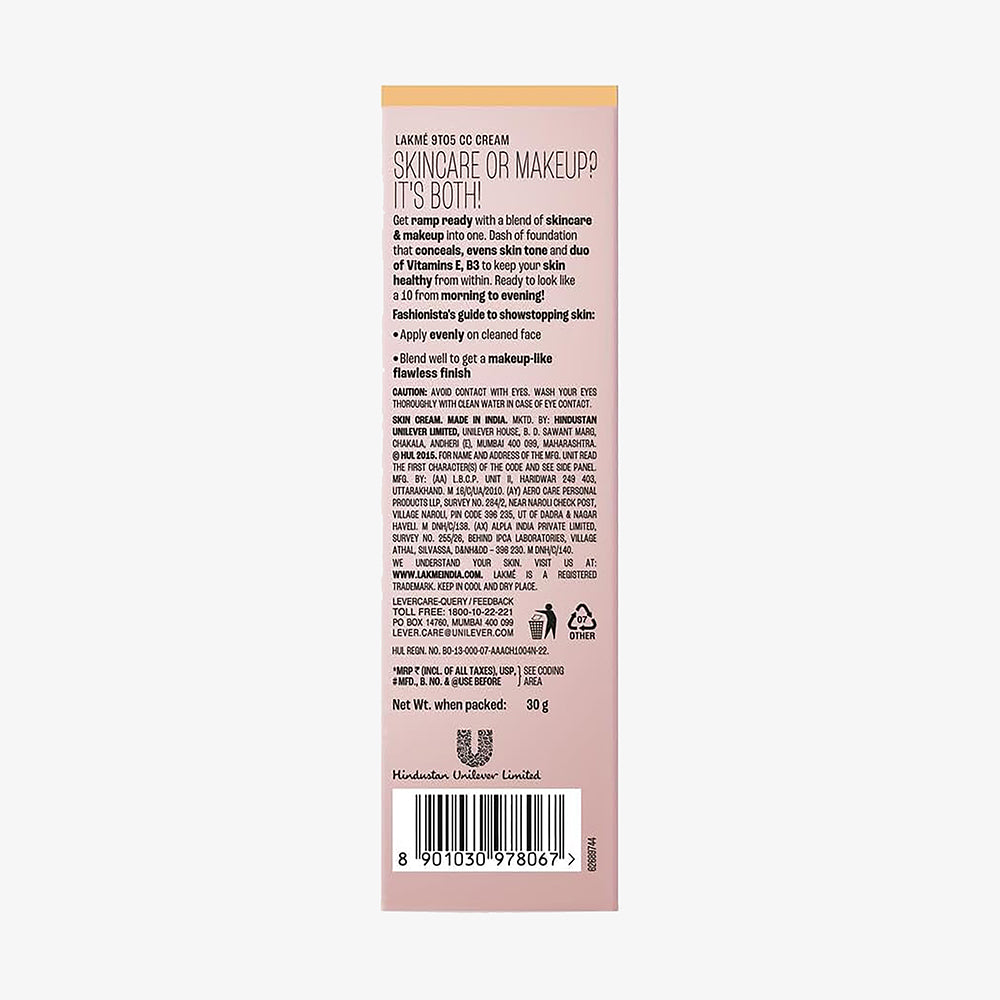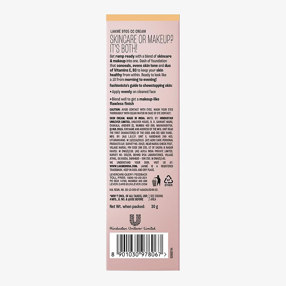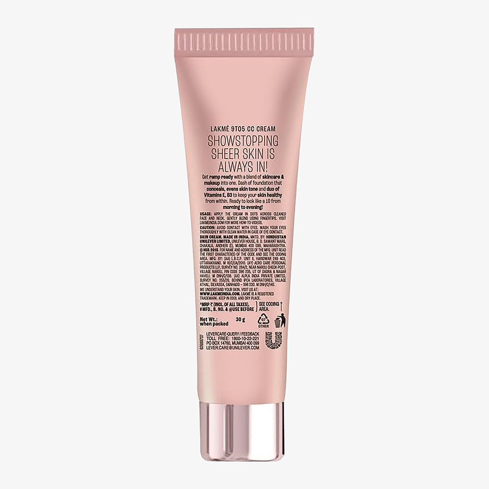 Everyday make-up can take a lot of time and sometimes can even look cakey. If you are looking for a cream that can take care of your delicate skin and give you that seamless glow, Lakmé 9 to 5 CC Cream is your perfect choice. This cream acts as an invisible skin stylist and lets you get that perfect look of makeup + skincare for any occasion. Be it work, party or simply an evening with friends, your personal stylist will help you get that right look for it all. It is time to move on to a simpler regime without compromising on skincare. This Lakmé 9to5 CC Cream moisturises your skin to give you a nourished and dewy glow with the benefits of make-up. With 4 shades – Beige, Honey, Bronze and Almond this CC cream blends into your skin completely to give you that invisible make-up finish. It conceals dark spots and blemishes to give you an even skin tone. With sun protection of SPF 30 PA++ and makeup benefits like skin coverage, this cream takes complete care of your skin. This cream can also be used along with other products or on its own if you prefer just the lightest touch of make-up. Furthermore, the Lakmé 9 to 5 CC cream comes in a chic sturdy packaging with a well fitted rose gold cap. Lakmé 9 to 5 CC Cream brings you the best of both worlds to give you that perfect look, for any occasion, in an instant.
