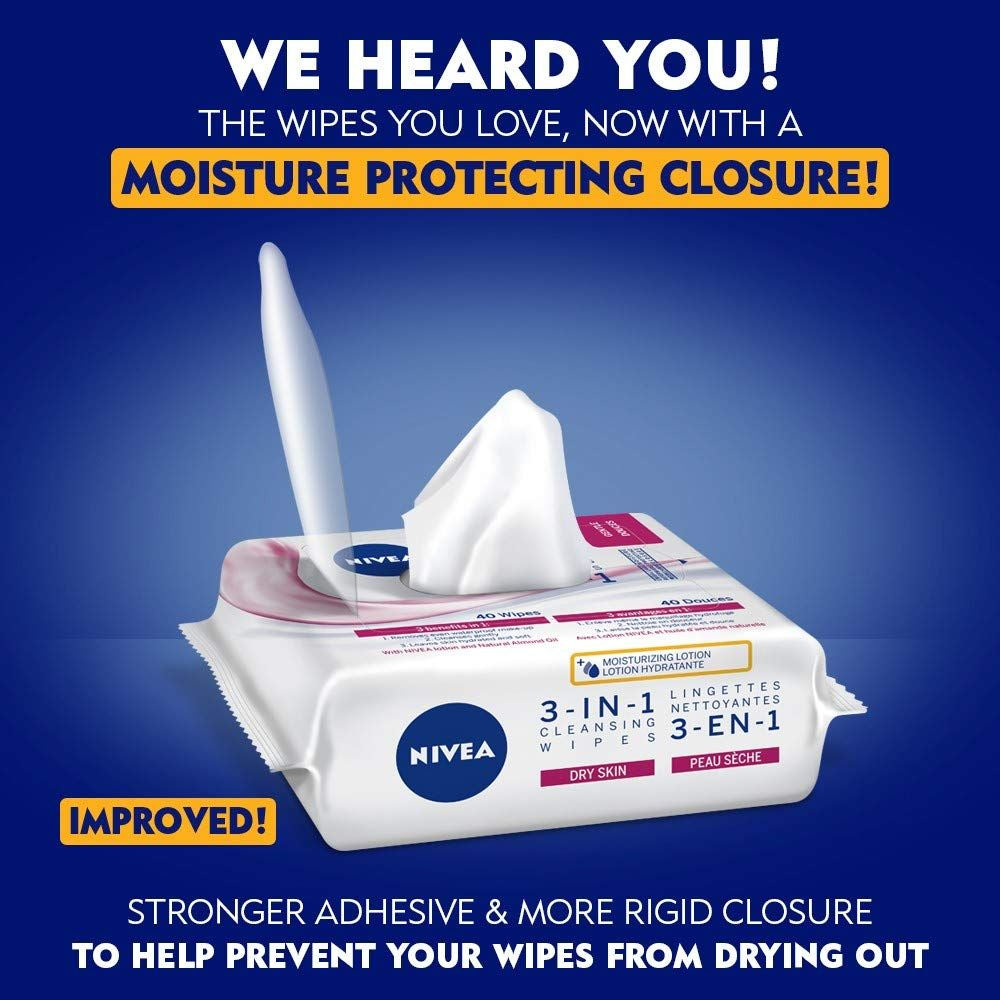 • 3-in-1 face wipes cleanse, remove makeup and moisturize in one.