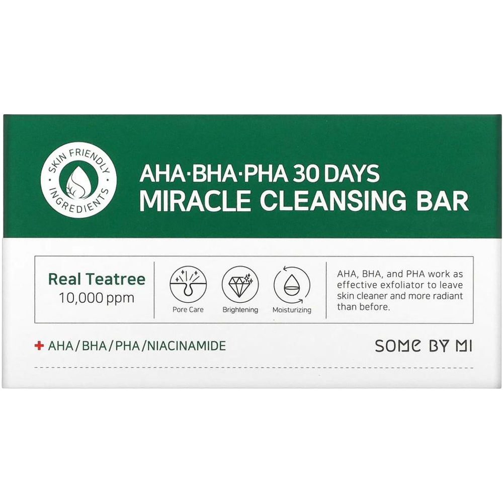 Some By Mi AHA-BHA-PHA 30 days miracle cleansing bar is a transformative skincare essential designed to tackle acne, blemishes and uneven skin texture. This soap-free cleanser combines the power of AHA, BHA and PHA exfoliants to gently remove impurities, dead skin cells and excess oil, promoting a clearer complexion. Infused with natural ingredients like tea tree oil, calendula and madecassoside, such type of skincare product soothes and nourishes the skin, reducing redness and inflammation. Perfect for daily use, this cleansing bar helps to balance skin moisture levels while addressing acne concerns. Its portable, bar form ensures easy application, making it an ideal travel companion for maintaining a consistent skincare routine. Shop online from Nysaa to experience the wonders of this cleansing bar for a radiant, blemish-free complexion.