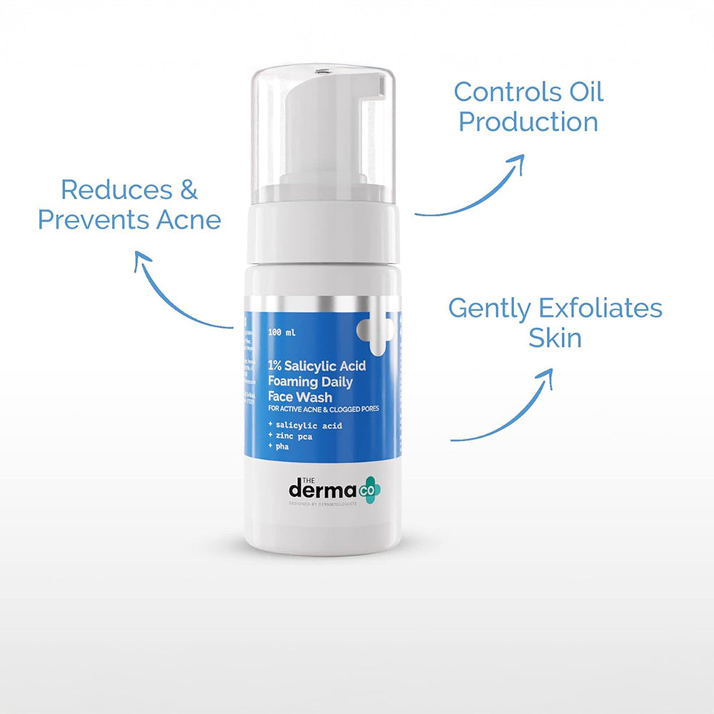 Frothy, foamy and fantastic! Meet our 1% Salicylic Acid Foaming Daily Face Wash that's super gentle on the skin and is great for acne prone skin. It is super effective in reducing & preventing acne and dissolving debris that clogs pores as it penetrates deeper in the pores because of its foaming format. The power-packed formula also contains Zinc PCA that controls oil production and limits the growth of acne-causing bacteria. Anti-inflammatory properties reduce redness and with regular use, the face wash softens skin and sloughs off dead skin with its gentle exfoliation. All in all, it's a gentle yet effective face wash for reducing active acne. Salicylic Acid(<2% w/w)