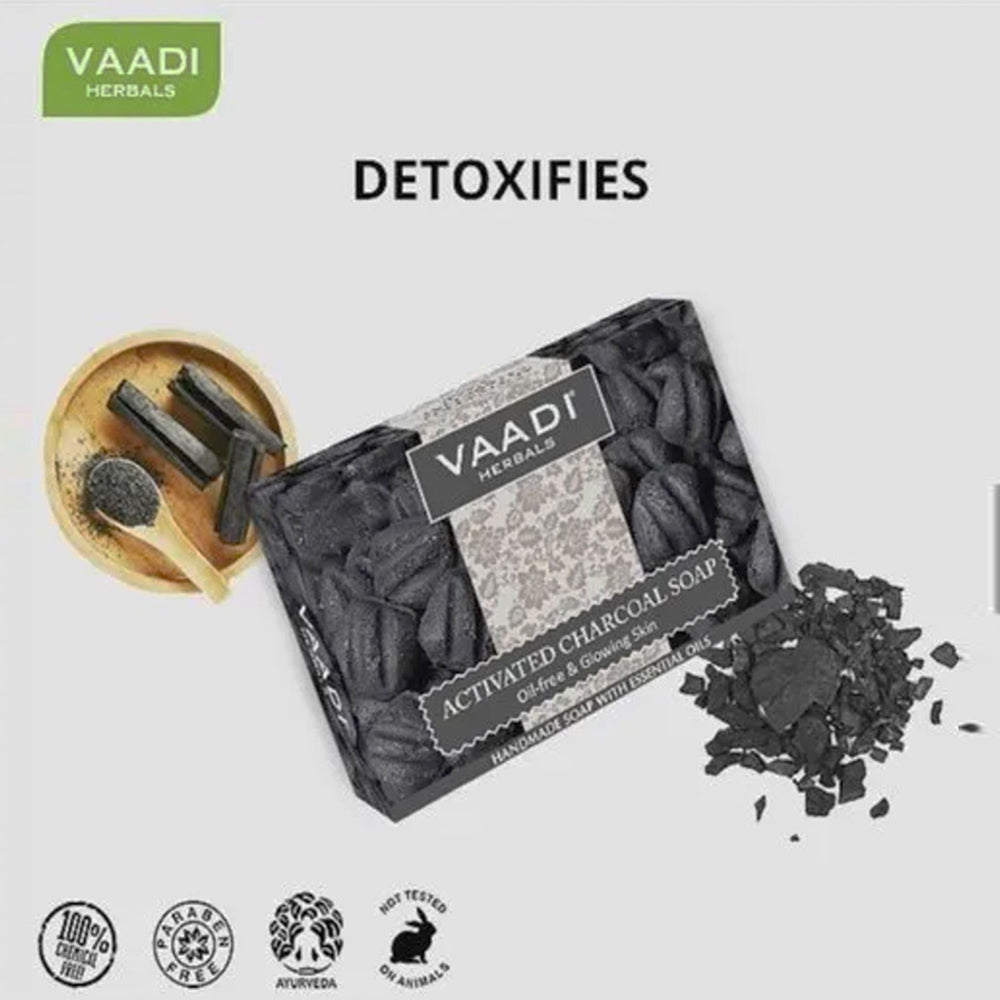 Experience the cleansing power of nature with Vaadi Herbals Activated Charcoal Soap. Crafted with care and expertise, this handmade soap is formulated to purify and revitalize your skin. Enriched with the goodness of activated charcoal, renowned for its deep cleansing properties, this soap effectively draws out impurities, excess oil and toxins from your pores, leaving your skin feeling refreshed and rejuvenated. Free from oils, this soap is perfect for oily and acne-prone skin types, helping to control excess sebum production and prevent breakouts. Say goodbye to dull, lackluster skin and hello to a radiant, glowing complexion. Elevate your skincare routine with Vaadi Herbals Activated Charcoal Soap and unlock the secret to naturally beautiful skin.